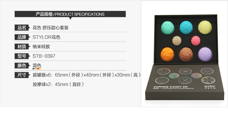 > 甜心套装 拔拔花罐 花色甜心按摩+拔罐理疗套装 纳米硅胶拔罐器
